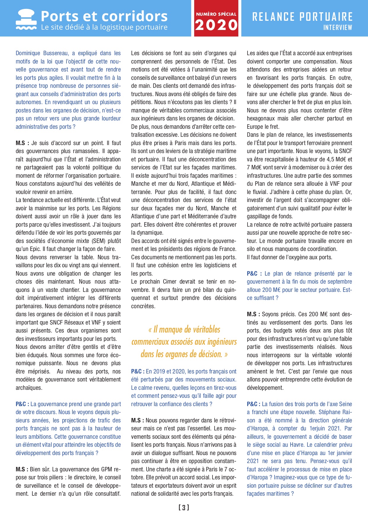 Afin de comprendre qu’après la pandémie une relance portuaire est absolument nécessaire.
