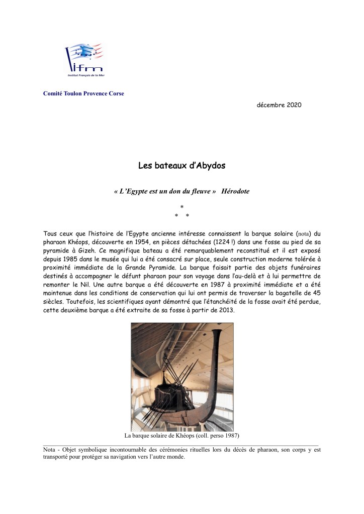 Cette fiche nous ramène à la civilisation fluviale de Egypte …..On est toujours dans le maritime.