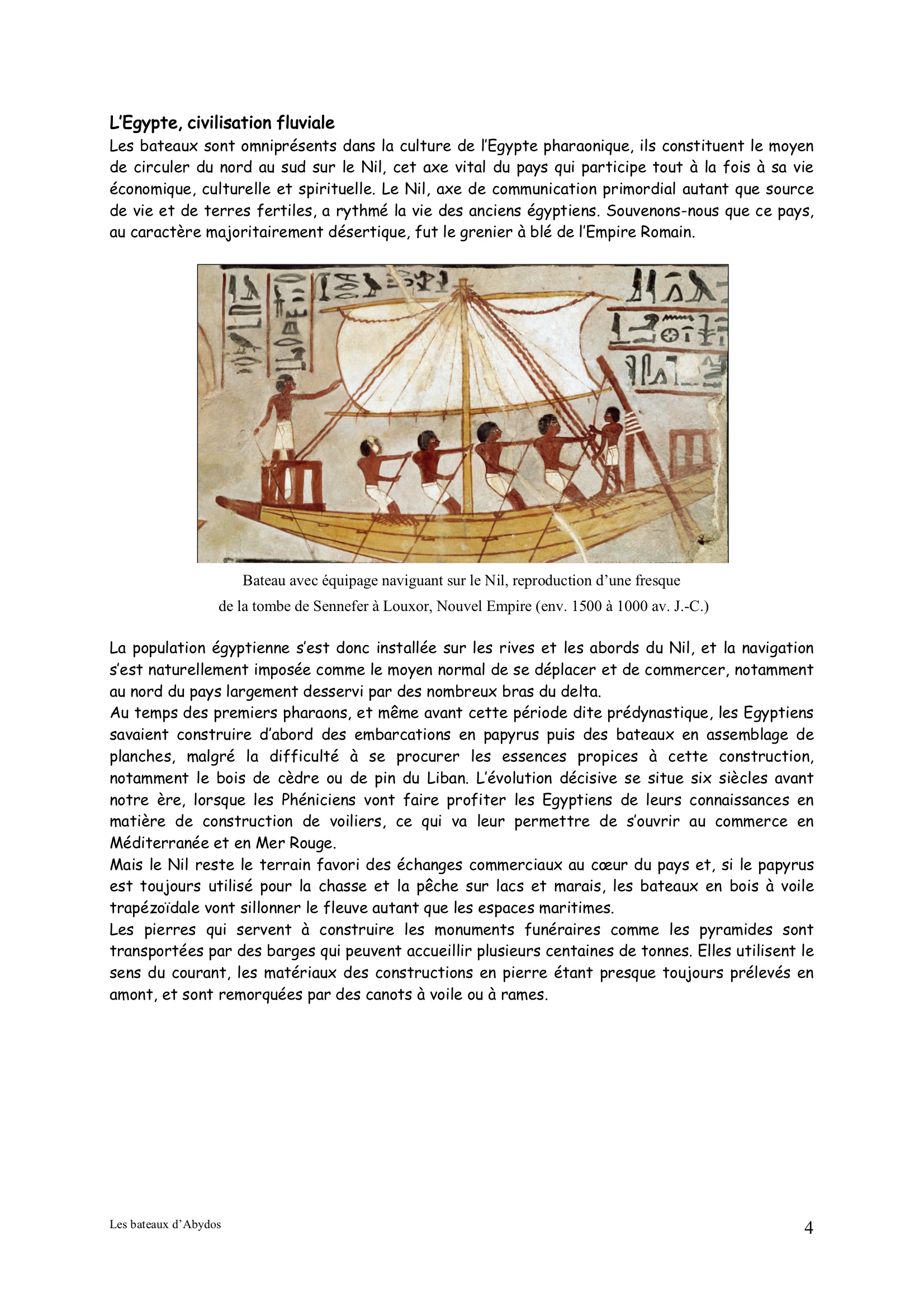 Cette fiche nous ramène à la civilisation fluviale de Egypte …..On est toujours dans le maritime.